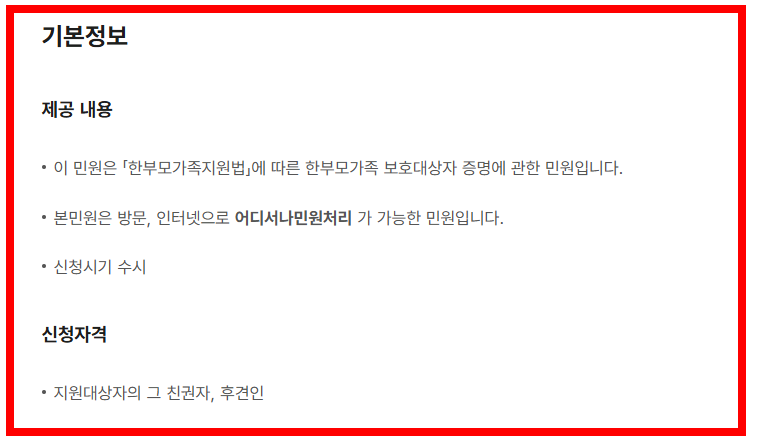 ※ 관할 주민센터에서 사전 등록된 가정이어야 발급 가능하며, 신규 신청자는 먼저 한부모가족 등록 신청을 해야 합니다.