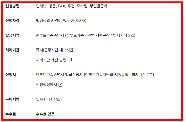 - 필요서류: 신청자 신분증, 위임장(대리 신청 시), 가족관계증명서(필요시)